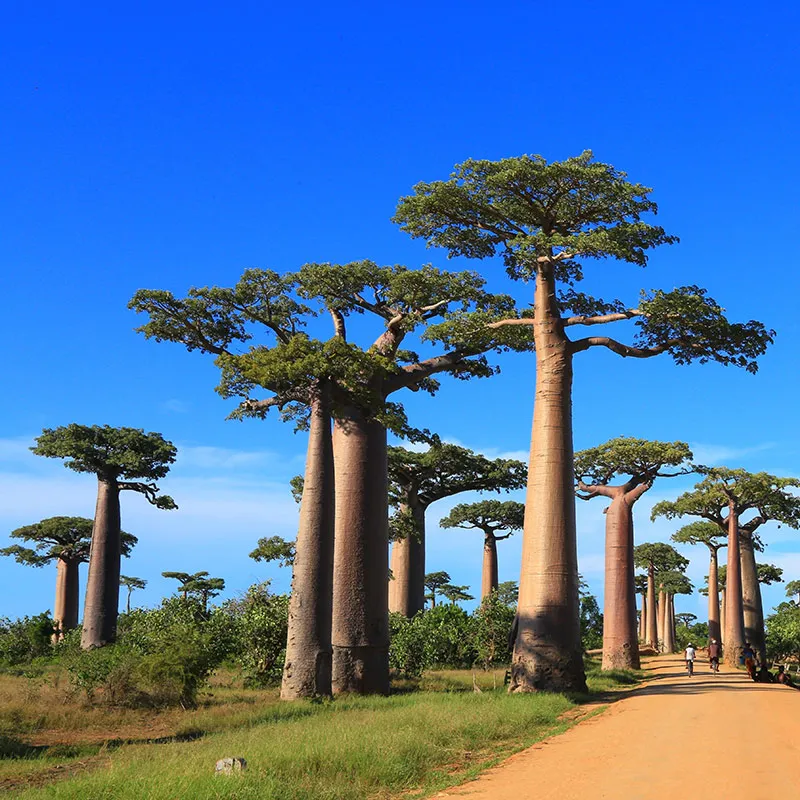 Madagascar – hòn đảo lớn thứ tư thế giới nằm tách biệt tại đông nam châu Phi – từ lâu đã nổi tiếng với hệ sinh thái đặc hữu không thể tìm thấy ở bất kỳ nơi nào khác. Nổi bật giữa bức tranh thiên nhiên hoang dã và đa dạng sinh học ấy chính là cây Baobab, những "gã khổng lồ" sừng sững vươn mình lên nền trời. Với thân hình phình to như chiếc bình nước khổng lồ và tán lá tựa như bộ rễ cắm ngược, Baobab không chỉ là một loài thực vật mà đã trở thành linh hồn, bản sắc và biểu tượng quyến rũ nhất của quốc đảo này.