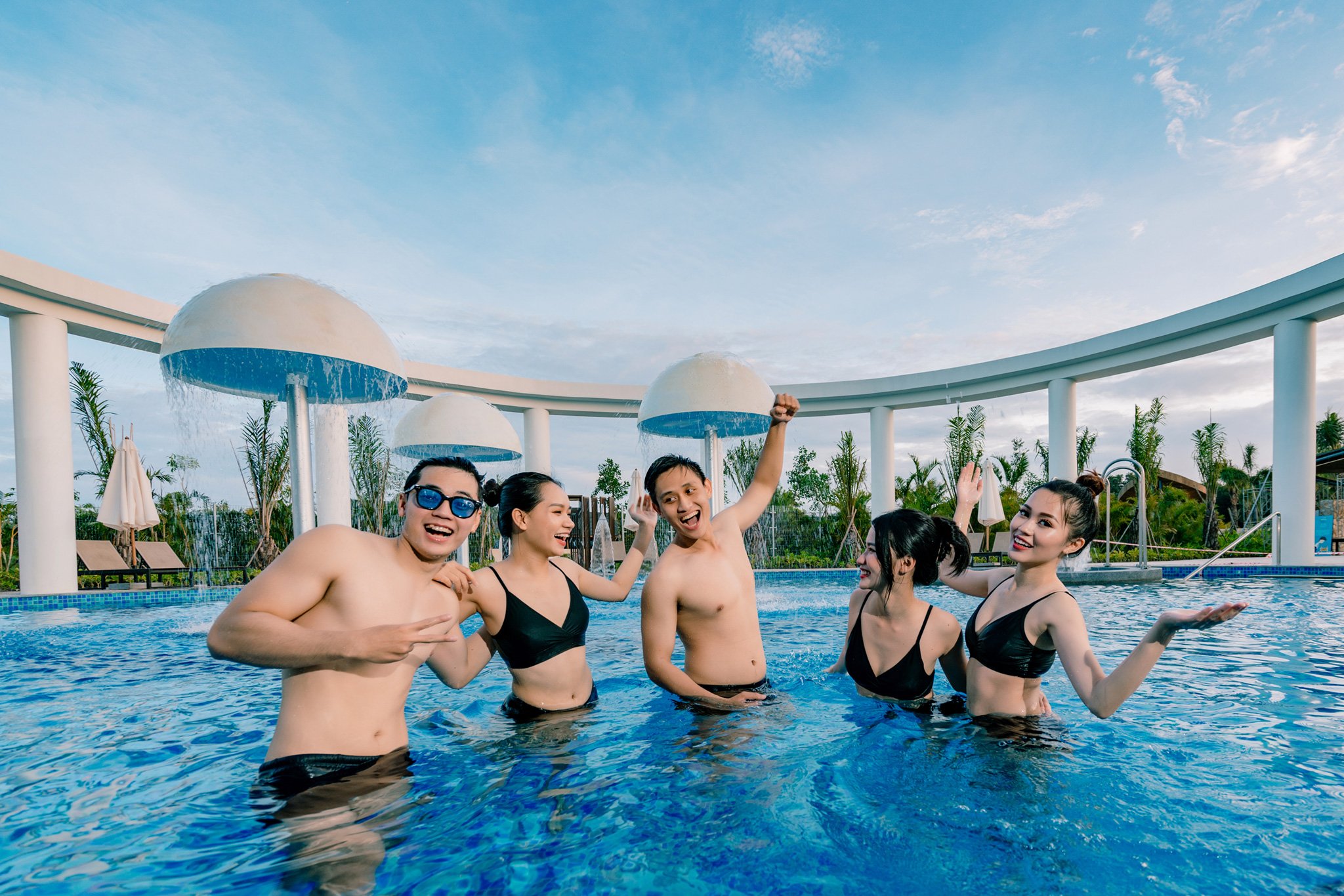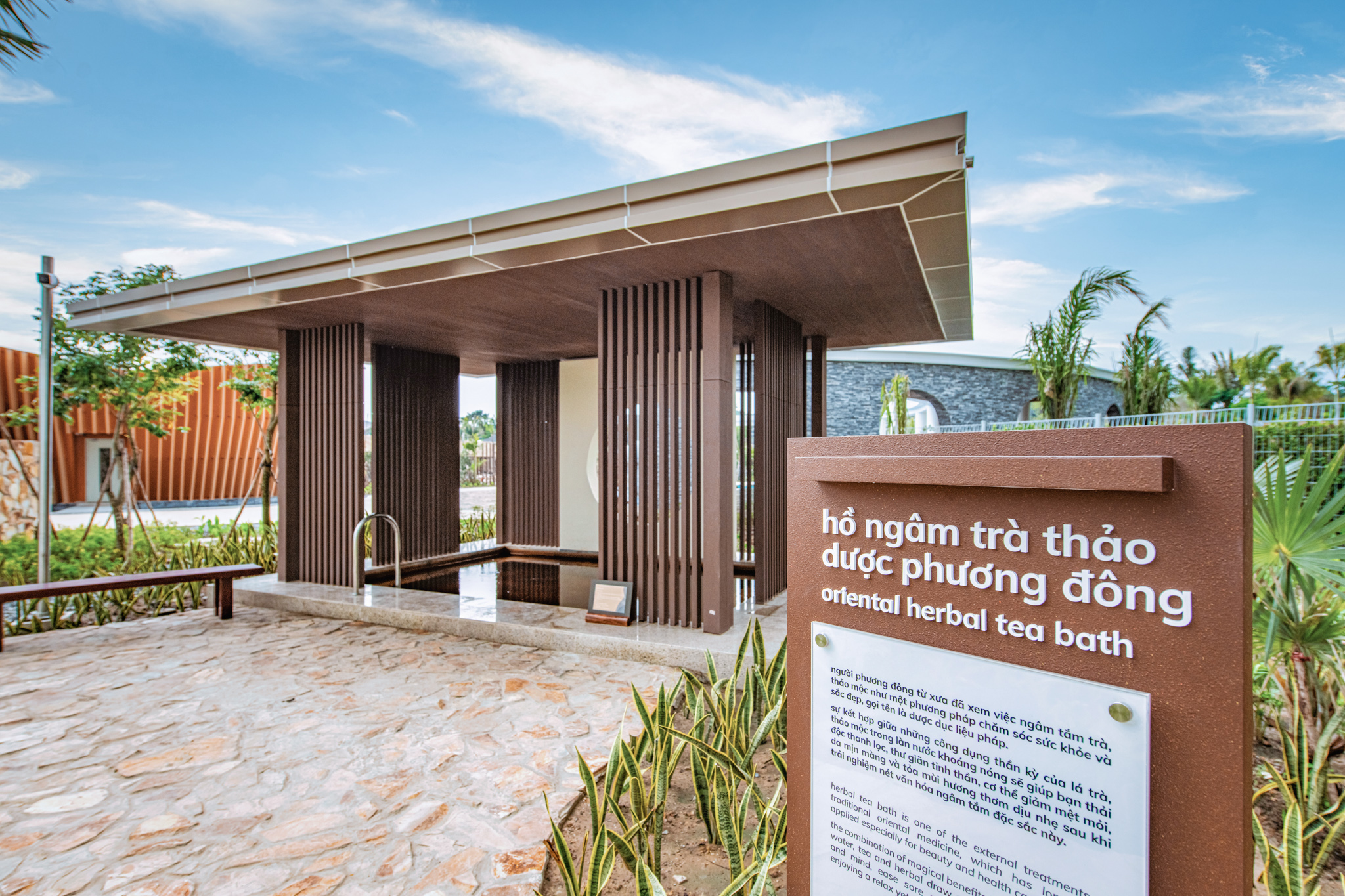 + Điểm nhấn đặc biệt là khu Around The World Spa mang đến những trải nghiệm chăm sóc sức khoẻ độc đáo bằng nước khoáng nóng kết hợp cùng nhiệt trị liệu, lấy cảm hứng từ 07 nền văn hóa khác nhau trên thế giới bao gồm: liệu pháp tắm bùn truyền thống của Việt Nam; lâu đài khoáng nóng Thổ Nhĩ Kỳ; hồ khoáng nóng pha rượu vang kiểu Pháp; thuyền gỗ xông nóng lạnh phong cách Bắc Âu; không gian khoáng nóng cổ điển của Đức; bồn ngâm khoáng trong hang động kiểu Hy Lạp và cuối cùng là hồ ngâm khoáng cùng hương thơm trà thảo dược phong cách Đông Âu…