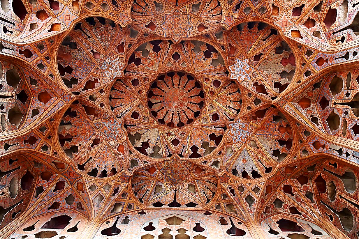 Āli Qāpu, lâu đài hoàng gia nhỏ có 6 tầng được xây dựng vào thế kỷ XVII và là một sáng tạo kỳ diệu của người Ba Tư trong bố trí nội thất. Phòng hòa nhạc ở tầng 6 được trang trí bởi vô số hoa văn khắc tạc lõm như các hốc tường tinh tế (hình bên), không chỉ mang giá trị thẩm mỹ mà còn có tác dụng giúp cho âm thanh có chất lượng tốt nhất khi hòa nhạc. Lâu đài được trang hoàng bởi nhiều bức họa vẽ trên gốm của họa sĩ cung đình Reza Abbassi, miêu tả các loài động vật./5.jpg)