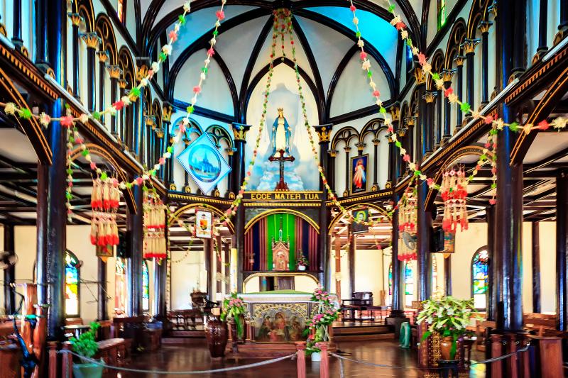 + Nhìn ngắm Nhà thờ gỗ Kontum - Nhà thờ là công trình kiệt tác bằng gỗ mang phong cách Basilica duy nhất còn lại trên thế giới.