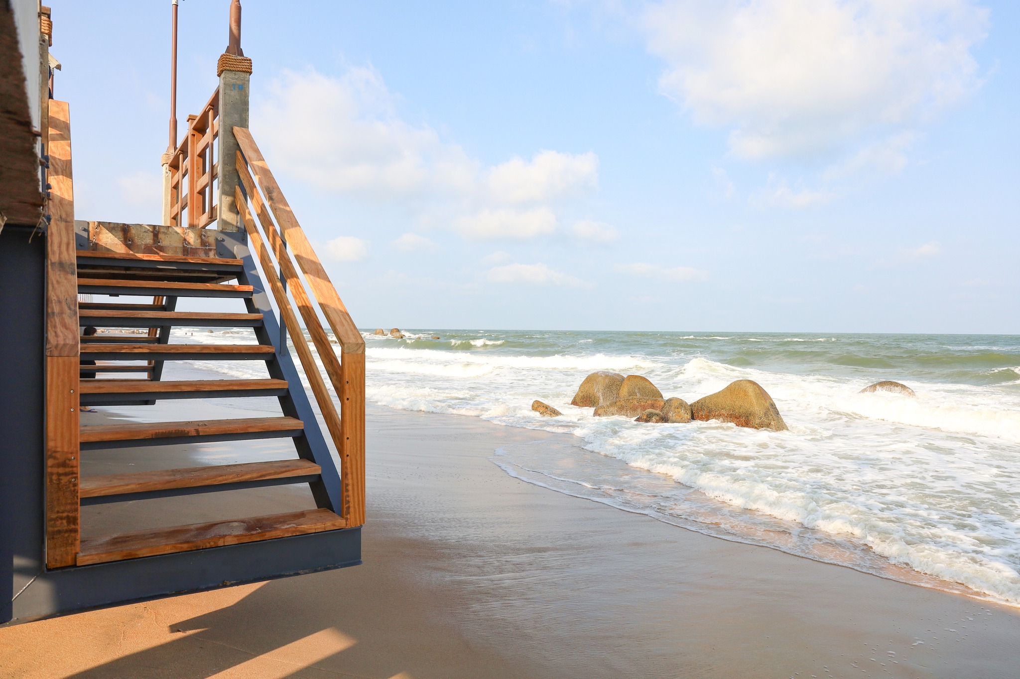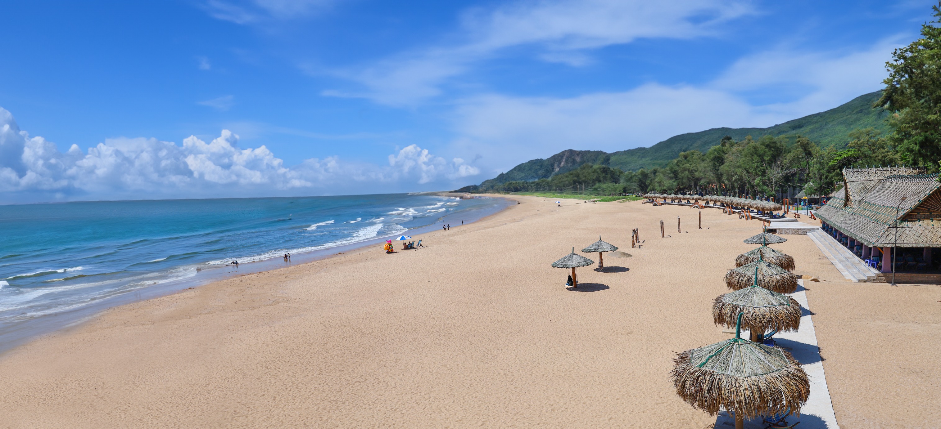 Bãi biển riêng rộng với bờ cát trắng mịn trải dài, là nơi lý tưởng để du khách tắm biển, phơi nắng và tận hưởng không khí trong lành.
