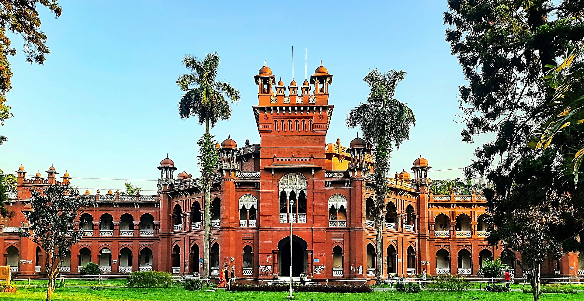 Tiếp theo, tham quan ngoại cảnh Curzon Hall, tòa nhà được người Anh xây dựng vào năm 1904 thời kỳ thuộc đia, là trụ sở Khoa Khoa học của Đại học Dhaka, nay trở thành một trong những thắng cảnh mang tính đại diện nhất và là ví dụ điển hình của kiến trúc Dhaka, kết hợp hài hòa các yếu tố Châu Âu và Mughal.