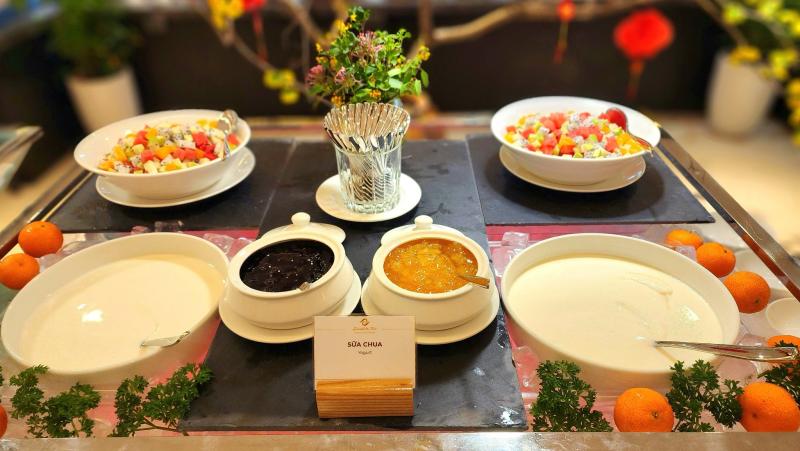 Quý khách dùng Buffet sáng tại khách sạn các món ăn đa dạng, phong phú phù hợp khẩu vị Á Âu. Thiết kế đặc trưng đậm tinh thần Indochine, tầm nhìn thoáng đãng hướng đến hồ bơi và biển xanh giúp nâng tầm trải nghiệm của thực khách, cùng lúc mang lại cảm giác gần gũi với thiên nhiên