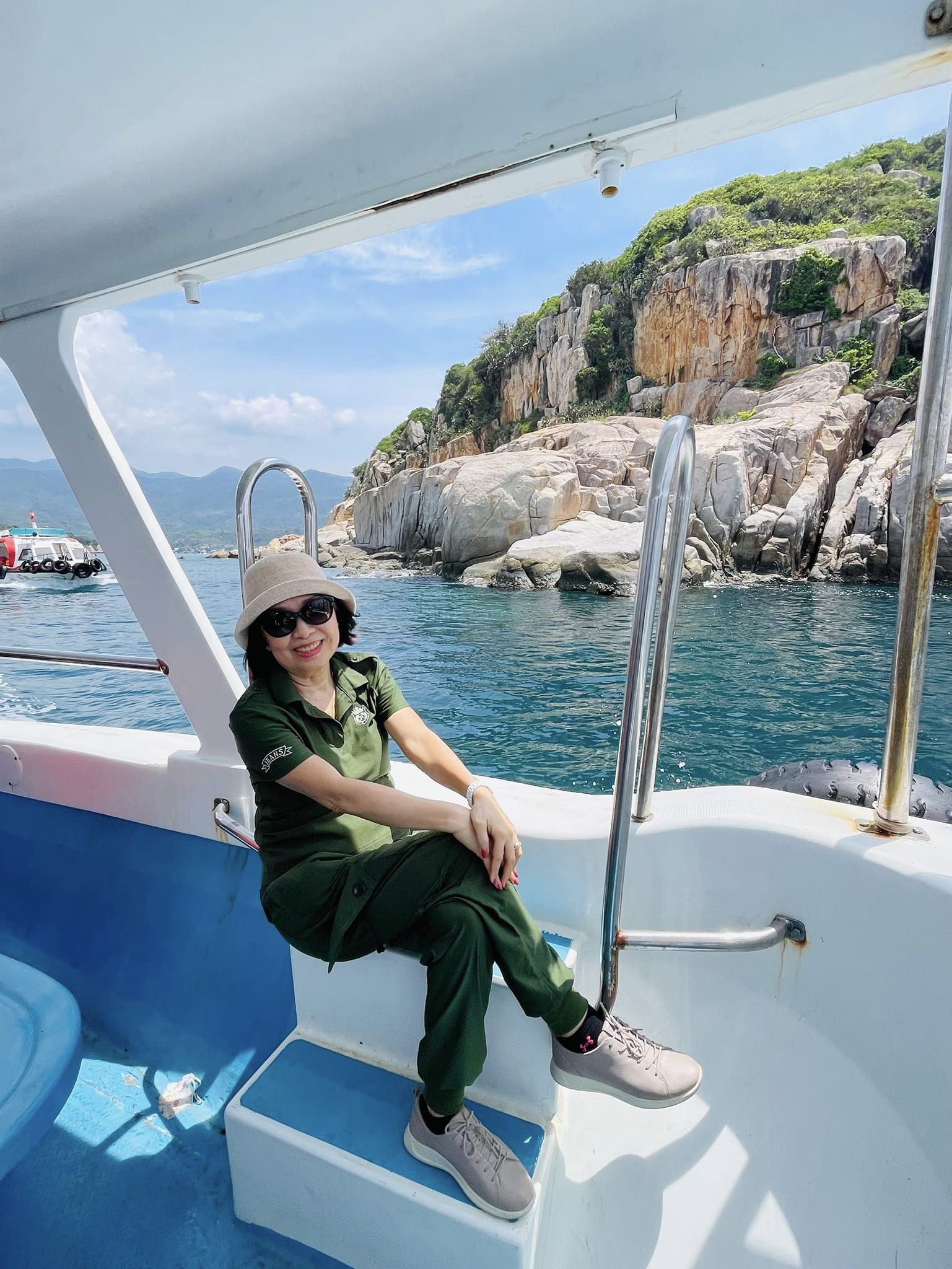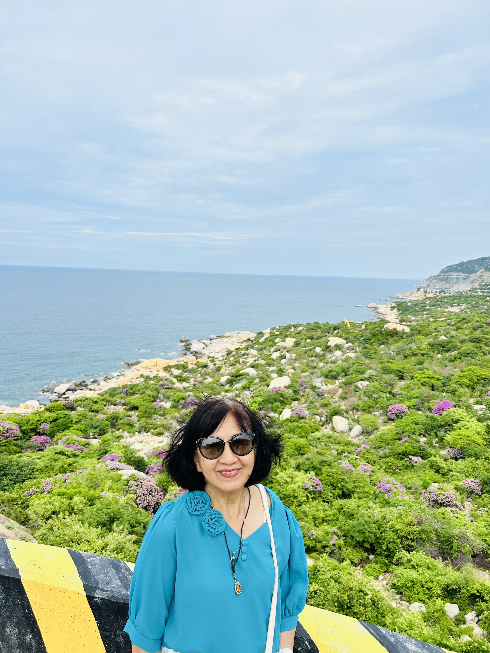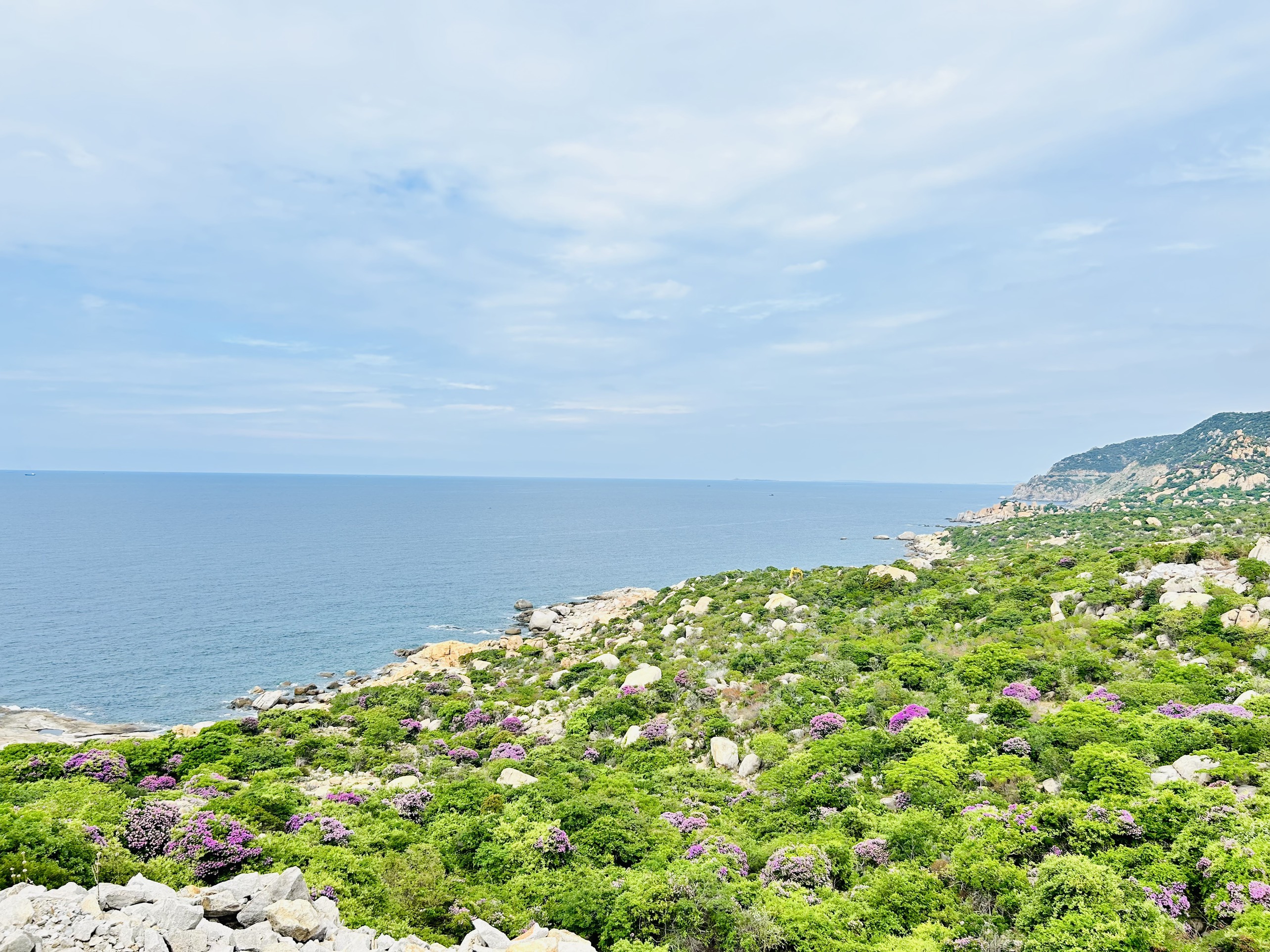 Sau khi tham quan, đoàn trở lại đất liền và di chuyển dạo Cung Đường Biển Đẹp nhất Việt Nam, một bên là núi một bên là biển xanh ngát một màu. Đoàn dừng chân chụp ảnh ghi lại khoảnh khắc đáng nhớ.