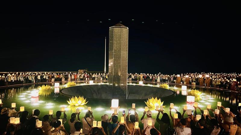 + Chiêm ngưỡng hệ thống ánh sáng đỉnh Vân Sơn và Tượng Tây Bổ Đà Sơn về đêm lung linh rực rỡ tựa chốn bồng lai, trải nghiệm không thể bỏ lỡ