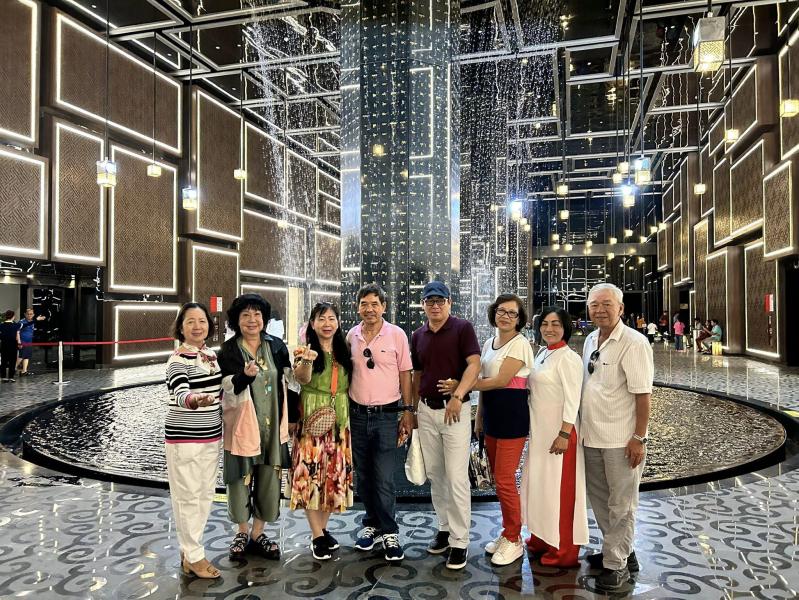 Đoàn thăm viếng khu trưng bày nghệ thuật Phật Giáo trong khung cảnh ban đêm lung linh tại đây. Dưới chân Tượng Phật Bà là khối đế cao 4 tầng với lối kiến trúc đồng tâm. Không gian nội thất sử dụng 3 loại đá: đá granite tự nhiên, đá trắng của Ý, đá nâu Tây Ban Nha tạo nên một không gian trang nghiêm mà bình an, tự tại.
