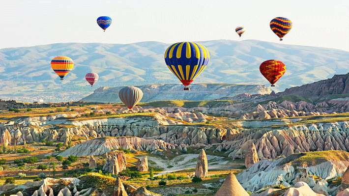 Quý khách có thể lựa chọn trải nghiệm bay khinh khí cầu đón bình minh tại Cappadocia – một trong những điểm đến khinh khí cầu đẹp và nổi tiếng nhất thế giới, nơi bầu trời rực rỡ sắc màu trở thành bức tranh sống động không thể nào quên (chi phí tự túc).